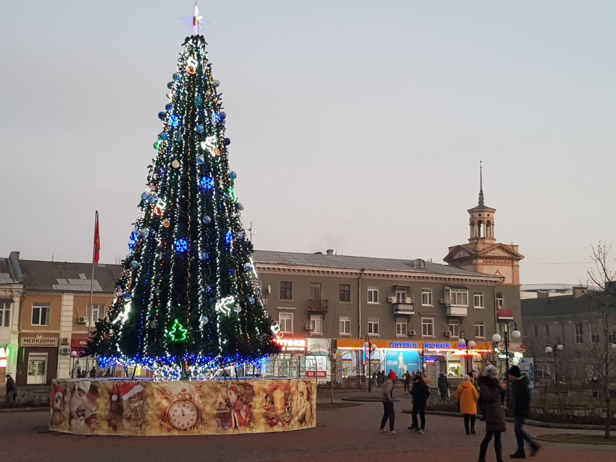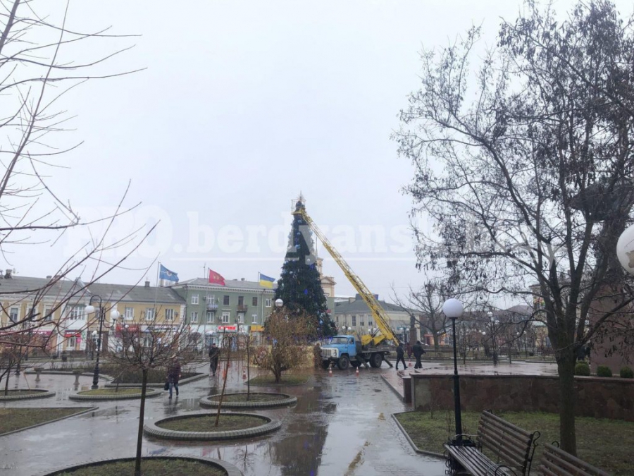 Инцидент произошел в Бердянске. Вандалы обнесли елочные украшения на главной елке города.