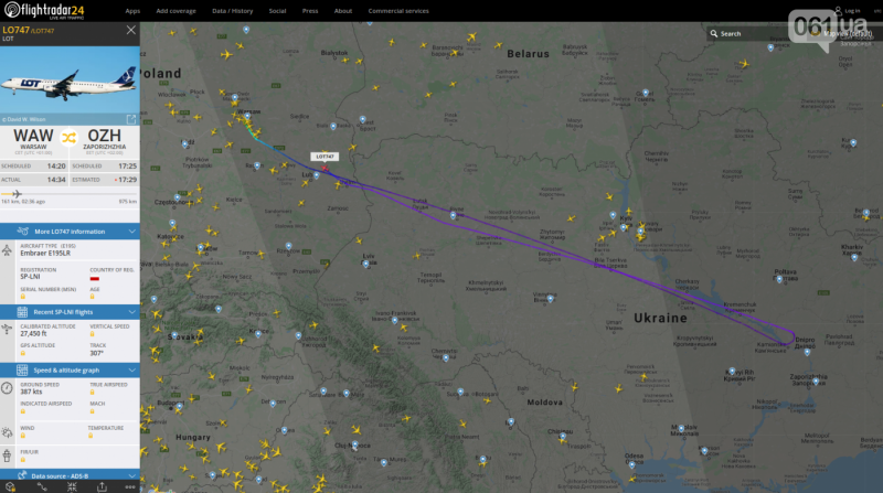Сегодня, 10 января, рейс LOT 747 "Варшава - Запорожье" не приземлился в месте назначения и полетел обратно.