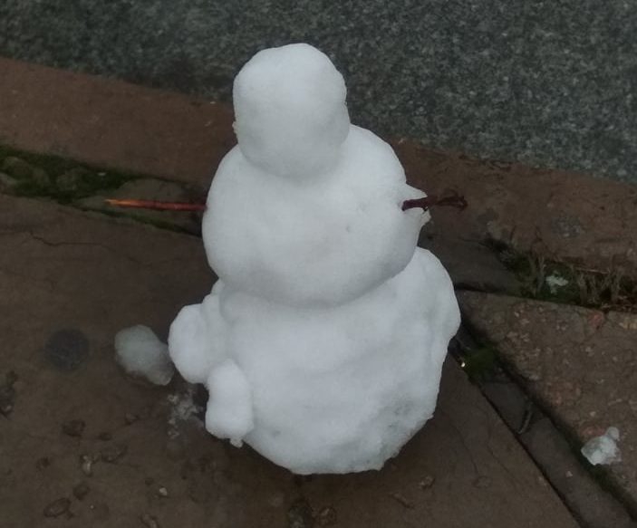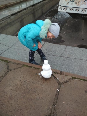 В этом году зима в Запорожье выдалась совсем бесснежная, но это не мешает детям наслаждаться холодной порой и находить новые развлечения. Так, ребята на площади Фестивальной слепили кроху снеговика.