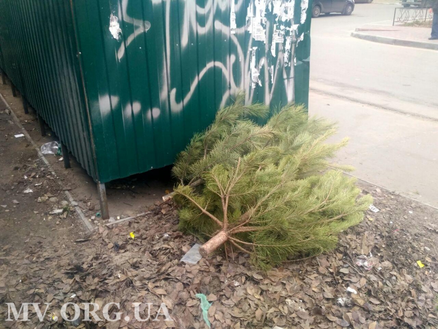 Слабаки: мелитопольцы массово выбрасывают елки (фото)