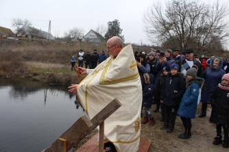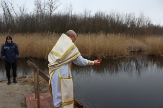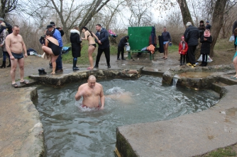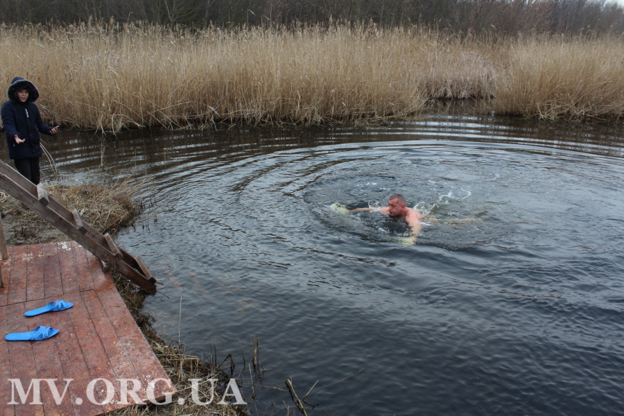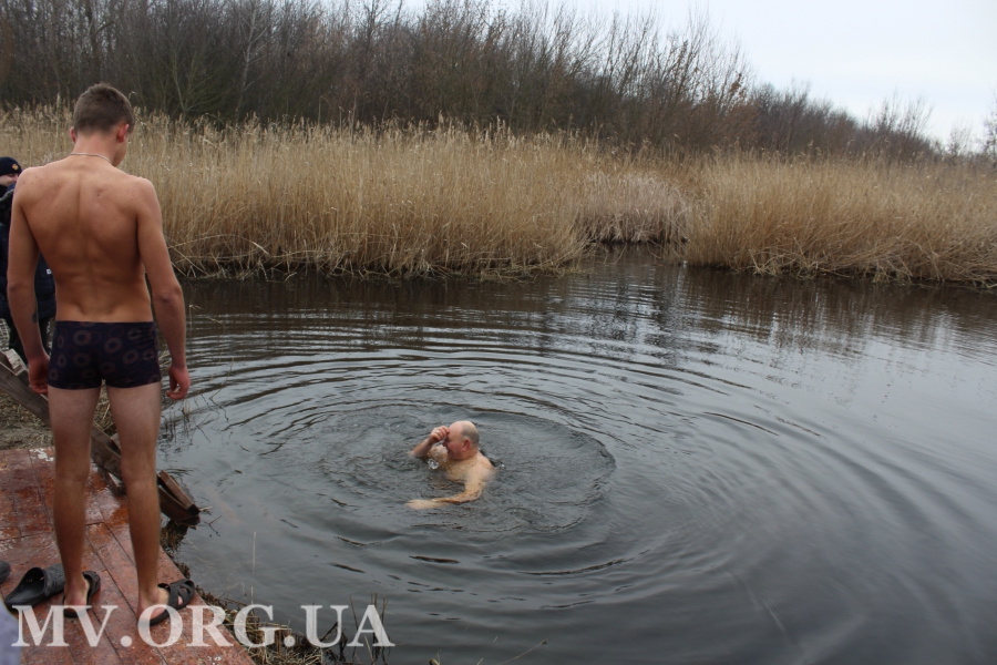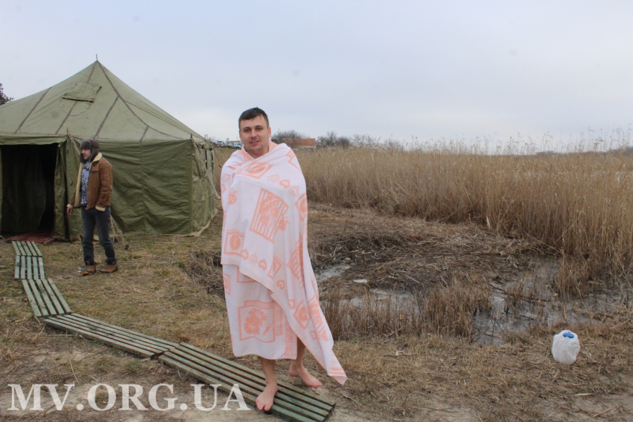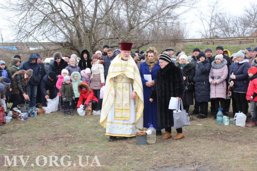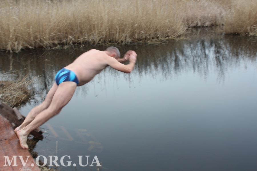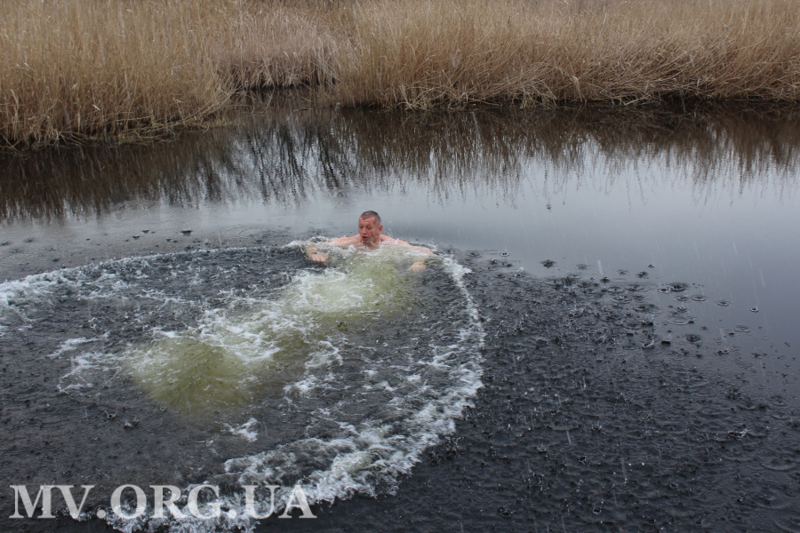В с. Тамбовка купания начались позже. Там воду реки Молочной освятили в 11.00 после чего люди и стали окунаться.