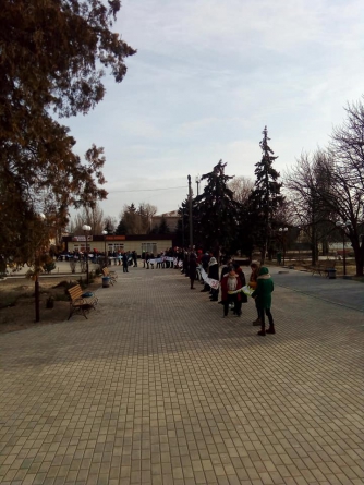 Школьники Кирилловки сделали живий ланцюг из рушников  фото