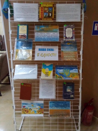 Также для посетителей ДК ко Дню Соборности Украины работает литературно-информационная выставка "Наша сила - в единстве», организованная совместно с Кирилловским поссоветом и библиотекой.
