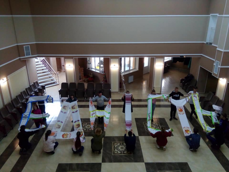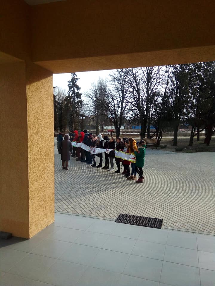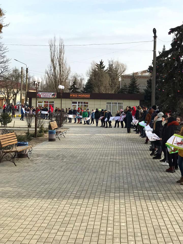 Школьники Кирилловки сделали "живий ланцюг" из рушников (ФОТО)