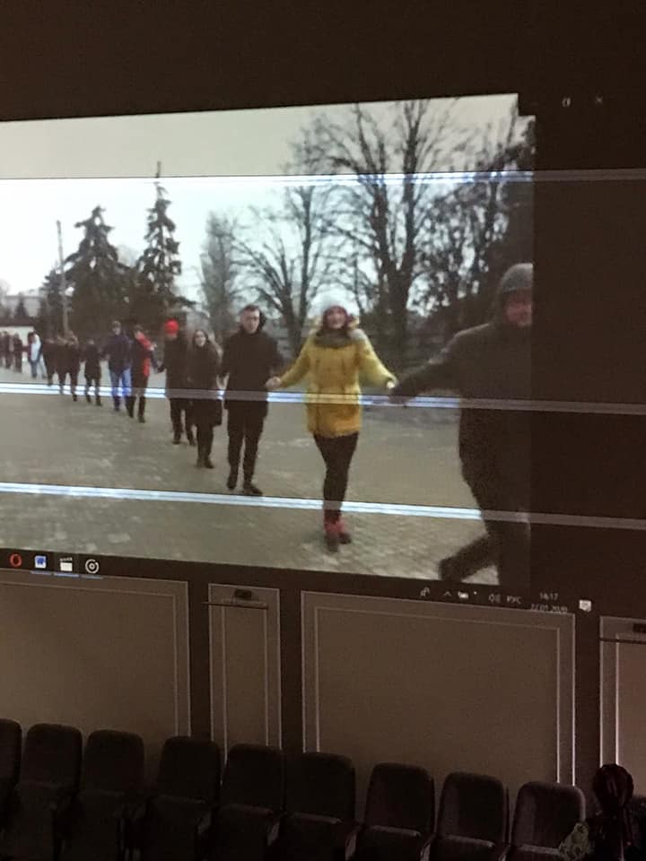 С удовольствием все присутствующие пересмотрели видеоролик, в котором каждый ученик узнал себя. А напоследок старшеклассники приняли участие в флешмобе, составив из вышитых украинских рушников такое важное в наше непростое время слово - "ЕДНІСТЬ".
