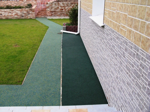 Тротуарная плитка, покрытая резиновой краской, не разрушается от мороза и воды, а внешний вид ее просто замечательный и радует хозяев.