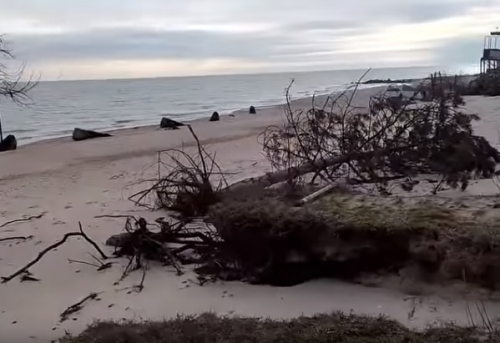 Вывороченные деревья, обрушившиеся бетонные плиты на косе Пересыпь говорят о силе бушевавшей здесь стихии.