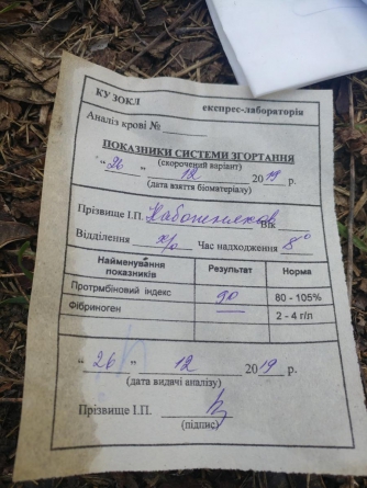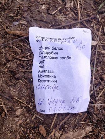 Одними из самых интересных находок стали документы из областной больницы: результаты анализов крови пациентов, направления и медкарты. Возможно эти документы помогут правоохранительным органам быстрее установить нарушителей природоохранного законодательства.