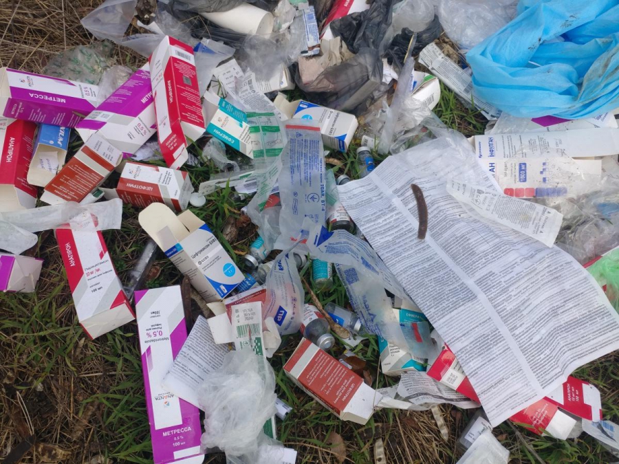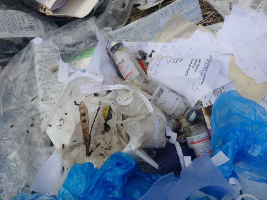 Состав свалки медотходов не сильно отличается от своих свалок-предшественниц: ампулы с остатками препаратов, использованные одноразовые больничные маски, бахилы и халаты, упаковки из под медикаментов, среди которых обнаружены и сильнодействующие антибиотики, использованные шприцы, а также бытовые отходы и отходы жизнедеятельности человека.