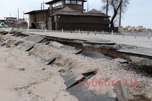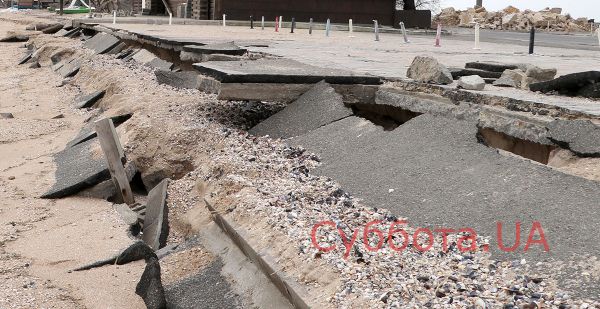 Море «наступает» и подмывает берег, из-за чего обвалилась часть автостоянки, а под асфальтобетонным покрытием образовалась пустота. Речь идет о стоянке, которая находиться между «Соломенным» пляжем и базой «Бухта».