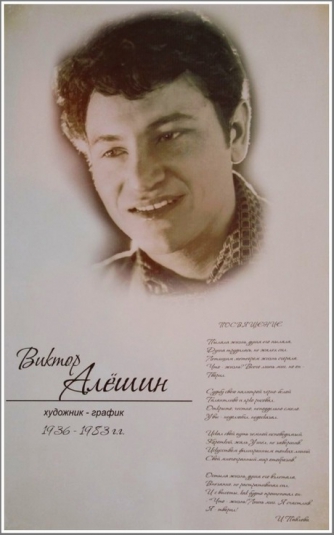 Виктор Алешин родился 15 января 1936 года в Мелитополе. Здесь, на берегу Молочной, прошли его детство и юность, здесь он посещал изостудию во Дворце пионеров, которой руководил Иларий Чубич, считавший своего ученика одним из самых талантливых и говоривший о нем и в шутку, и всерьез: «Великий Алешин». В 1960 году Виктор поступил в Московский полиграфический институт, после учебы в котором остался в Москве. Любил и хорошо знал кино и оформлял киноведческую литературу; увлекался поэзией и иллюстрировал книги стихов – многих очень известных поэтов. Одна из последних его работ – рисунки к книге Василия Шукшина «Я пришел дать вам волю». За десять дней до смерти Виктор Сергеевич получил мастерскую, которой радовался после долгих лет кочевья по московским подвалам и углам. Умер 6 марта 1983 года.