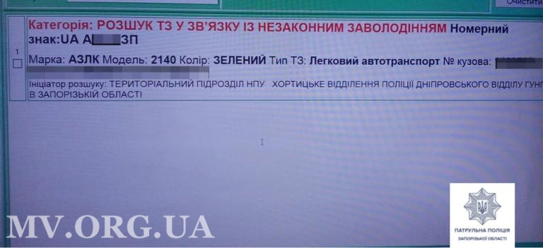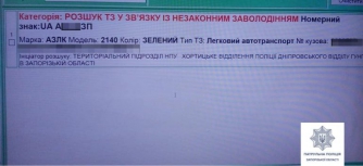 В Запорожье благодаря бдительности прохожего разыскали угнанный автомобиль