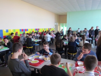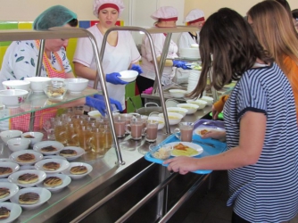 Во время визита джиректоров школ Семеновской ОТГ дети пришли на обед, и гости школы увидели как работает принцип шведской раздачи пищи, когда школьник самостоятельно выбирает себе блюда из предложенного меню. После посещения школьной столовой директор Азовской школы провела экскурсию по учреждению.