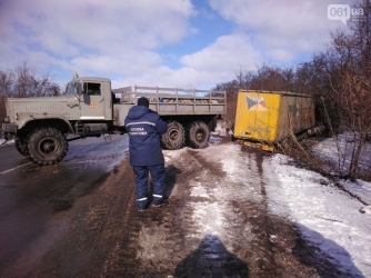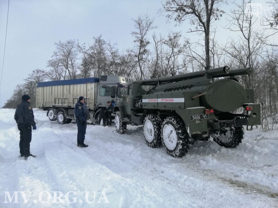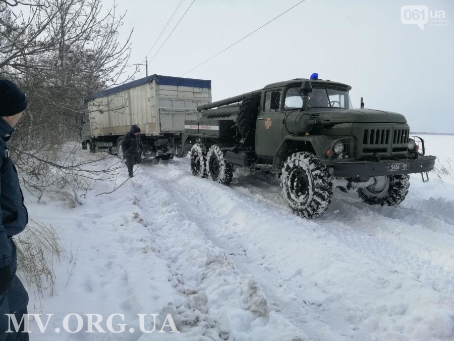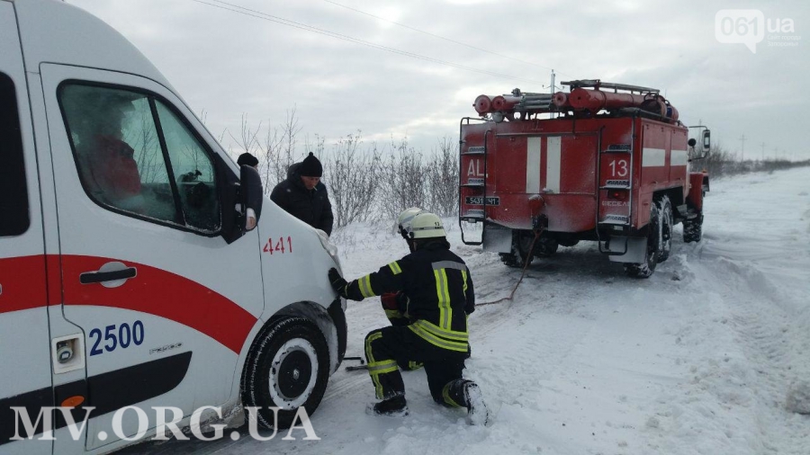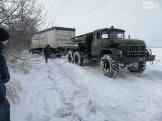 Сегодня 7 февраля, с 11 до 15 часов 2 грузовика спасатели отбуксировали в Токмакском и Вольнянском районах, 4 грузовика и авто "скорой", которая ехала на вызов, вытащили в Веселовском районе. Спасено 10 человек.