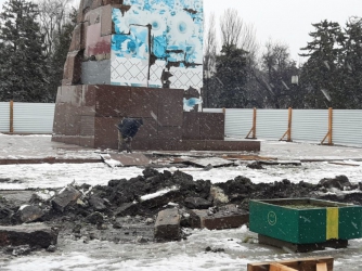 Конец эпохи: в Запорожье начали демонтаж постамента памятника Ленину