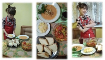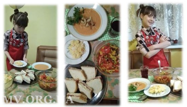 Ученик 7-Б класса Роман Ященко приготовил для своей семьи картофельные ньоки и капустный салат. Андрей Белякин, ученик 4-Б класса удивил родных куриными наггетсами с соусом из каркаде. Ксения Жардяцкене из того же 4-Б подошла к вопросу основательно и приготовила полноценный обед: картофельный суп-пюре с мускатным орехом, пшонную кашу с квашеной капустой, салат из свежих овощей, закрытые бутерброды с повидлом и чай каркаде. А все дружно ученики 5-Б и 8-А классов в школьной столовой приготовили жаркое по-домашнему. Готовили сообща, под чутким руководством майстерици Вкусной еды Светланы Гмыри, а также учителей Эльвиры Сулеймановой и Виктории Князевой. Сообща затем и дегустировали.