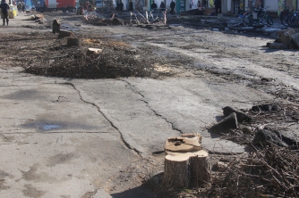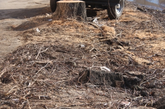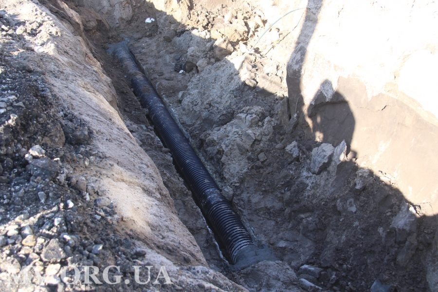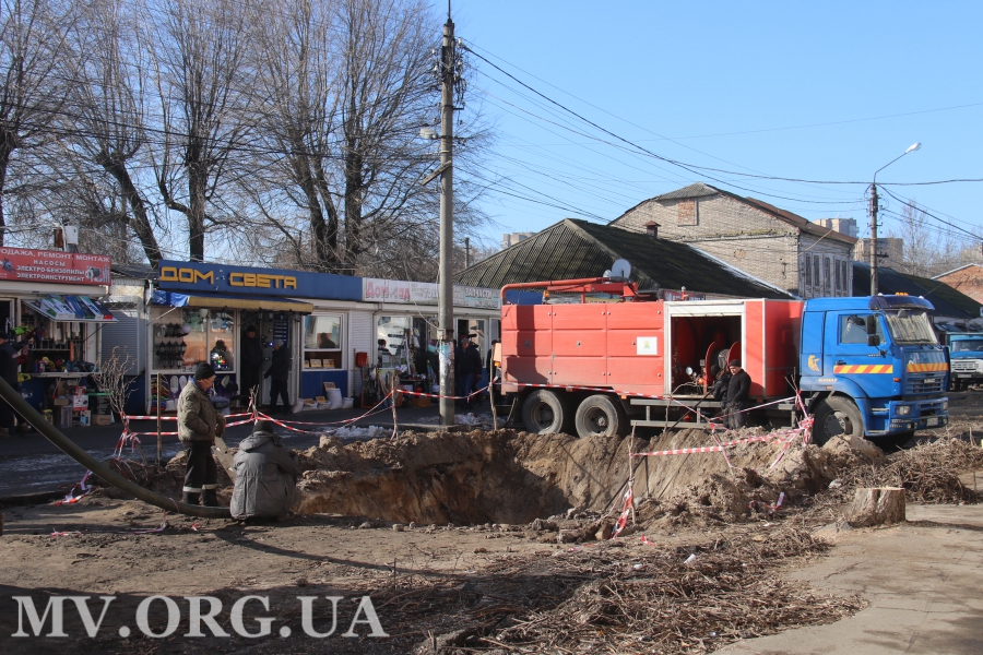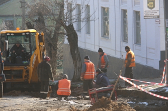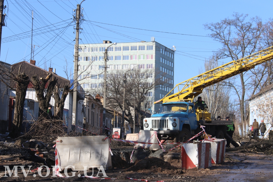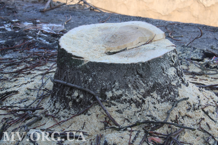 Ремонт водопроводной сети сотрудники КП «Водоканал» уже завершили, сейчас сотрудники ЧП «Вакарь» срезают на этом участке акации. Стоит заметить, что местные жители этому только рады. В нижней части от деревьев тоже остались одни пеньки