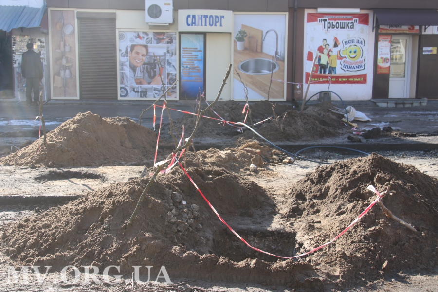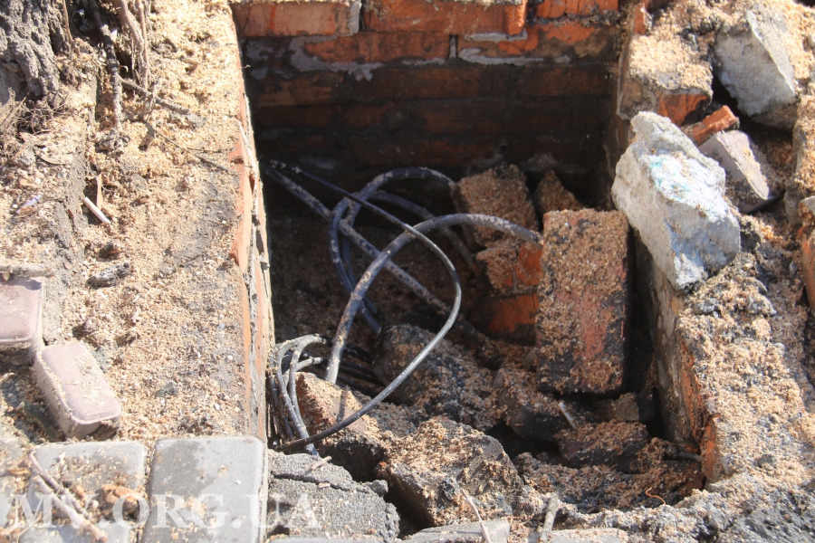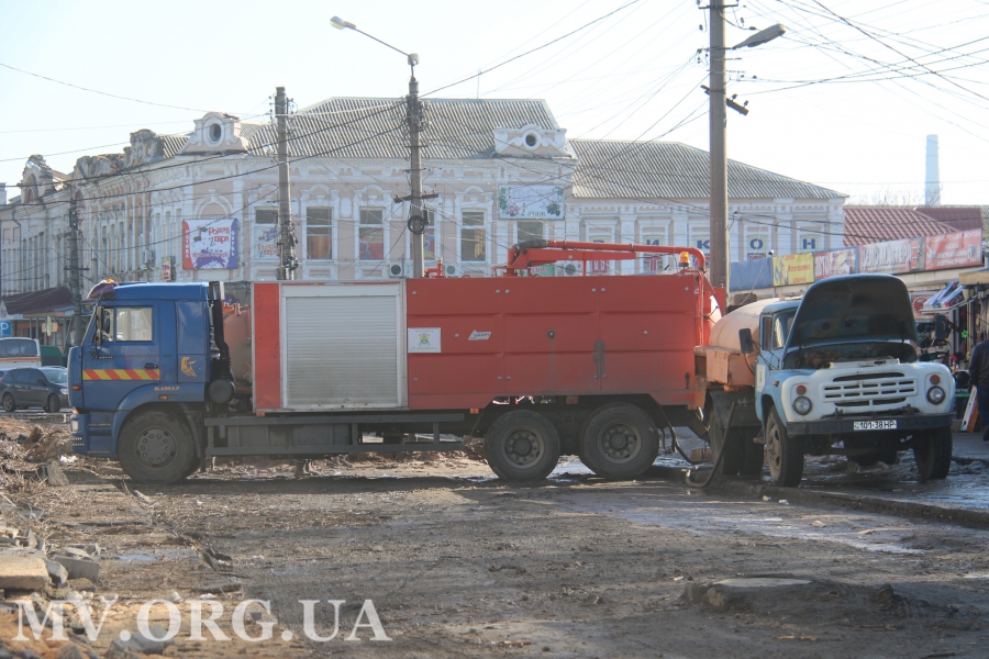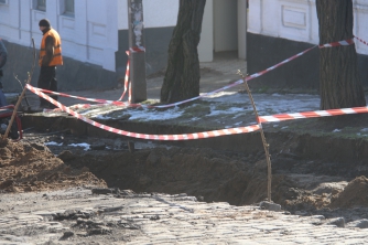 Чуть выше от ул. М. Грушевского продолжают демонтировать историческую брусчатку. Напомним, что часть ее перенесут на стометровку, остальное будет храниться у ЧП «АБЗ».