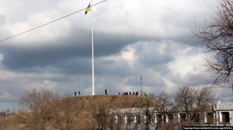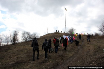 В Запорожье на Хортице провели символический подъем на самую высокую точку острова - курган, расположенный у здания музея истории Запорожского козачества.