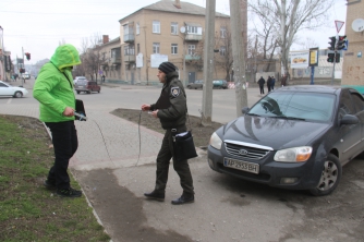 Первый нарушитель обнаружился на ул. Интеркультурной. Он оставил свой автомобиль у бетонных блоков, ограждающих зону ремонта коллектора. Инспекторы пояснили, что водители, оставляющие так автомобили, мешают проезду спецтехники (для этого блоки на время отодвигают).