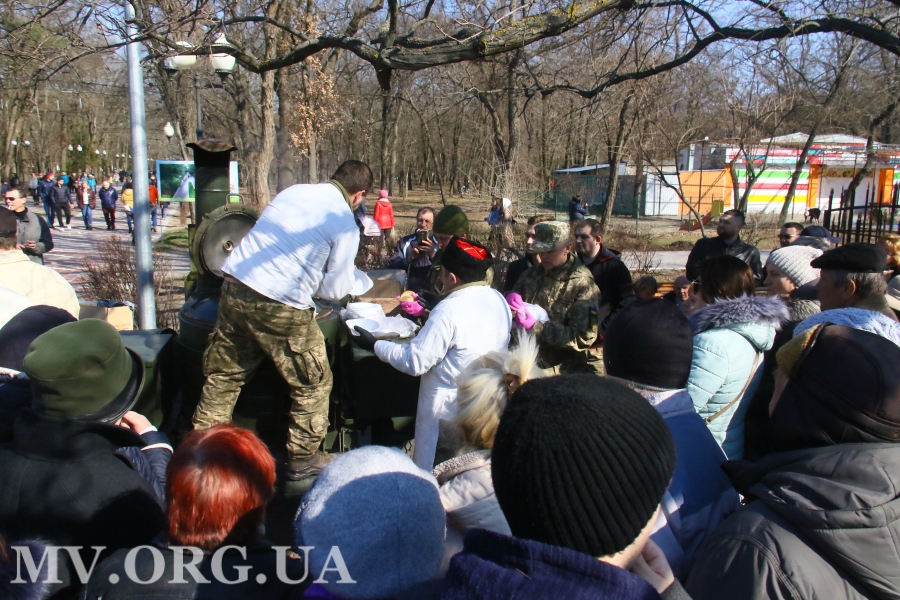 Возле блинчиков да возле кулеша, которым угощал Мелитопольский Казачий куринь, самые большие очереди. Впрочем, и к палаткам, где торгуют вкусными шашлыками, медом, выпечкой, очереди не малые. Мелитопольцы хотят вкусной еды да побольше.