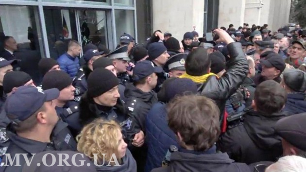 Протестующие окружили вход и разбили стеклянные двери в здание правительства. "Мы – народ, Додон – предатель", "Кику на свалку, вместе с Чокоем", "Долой Додона", "Долой правительство" скандируют они.