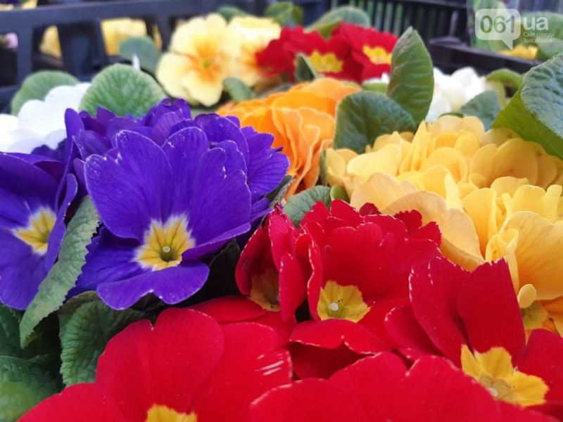 Сегодня на цветочных базарах Запорожья с самого утра аншлаг. Наибольшим спросом пользуются ирисы, тюльпаны и первоцветы.