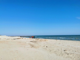 Погода на берегу моря очень приятная. Светит солнце, веет лёгкий ветерок.