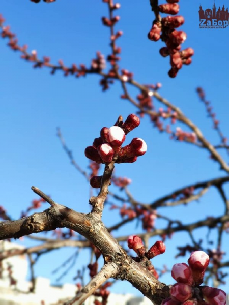 Сегодня, 12 марта, в Запорожье начал цвести абрикос в районе Песков.