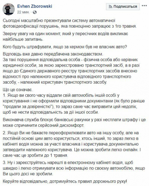 Так, он написал, что исполнительная служба блокирует банковские счета автовладельца в случае неуплаты штрафа. Поэтому, если владелец не пользуется транспортным средством, за рулем которого ездит другой человек, он должен это официально оформить.