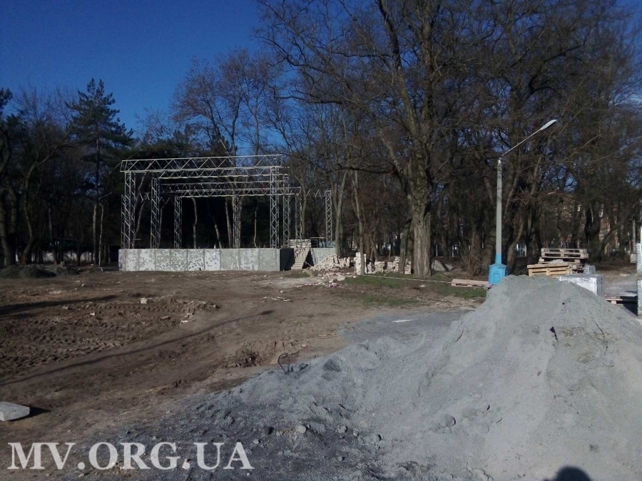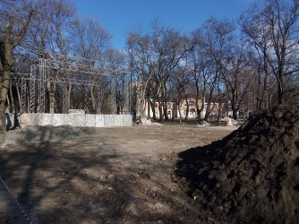 Работы по обустройству летней сцены в парке культуры и отдыха им. Горького возобновлены.
