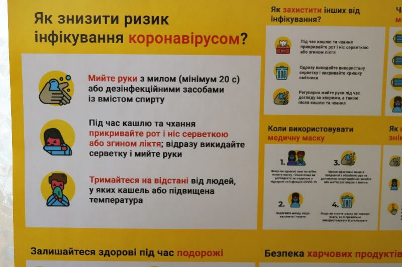 Посетителей немного. Сотрудники активно протирают двери и перила. В разных местах размещены плакаты о профилактике коронавируса. А на втором этаже центра показывают ролики на эту тему.