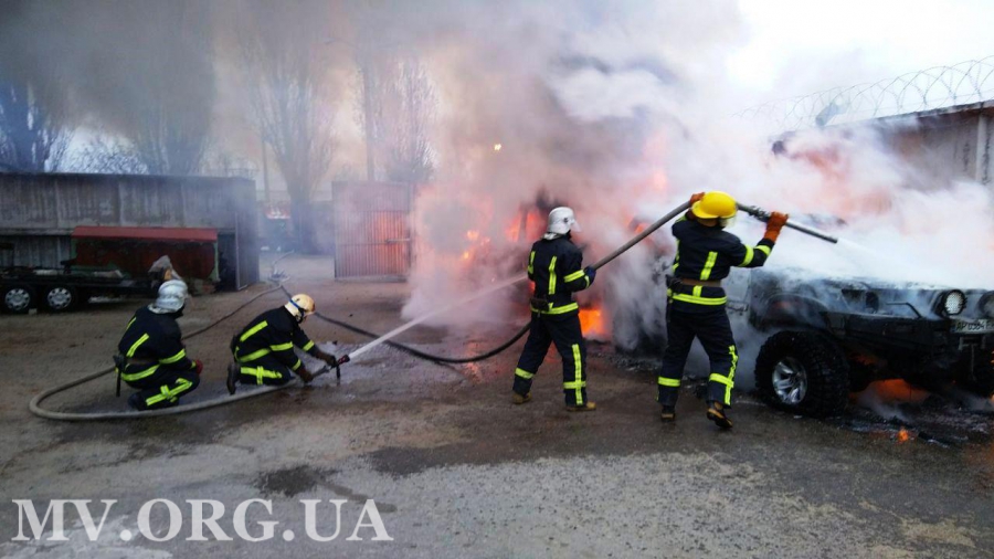 Прибыв на место происшествия, спасатели установили, что горят два автомобиля «Mercedes Sprinter» и «Mitsubishi Pajero» на общей площади 14 кв.м.