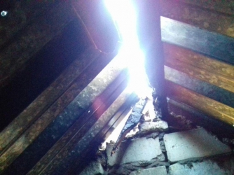 Прибыв на место происшествия, спасатели установили, что горит крыша надворной хозяйственной постройки и куча дров на общей площади 9 кв.м.