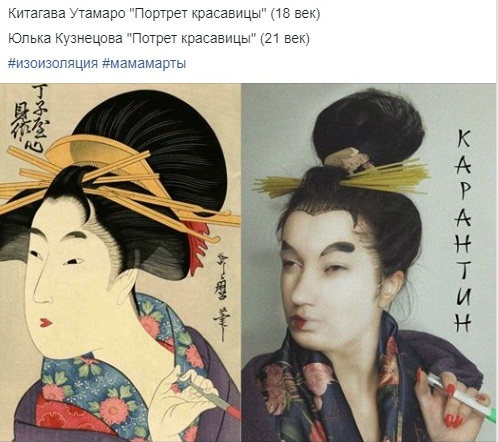 Участником флешмоба может стать каждый. Размещайте в группе свои версии картин известных художников, музейной скульптуры, афиш, гравюр и пр. Главное условие – все фото должны быть сделаны внутри изоляции. Только сейчас, дома, из подручных средств. Запрещен фотошоп, но допустима коррекция цвета.