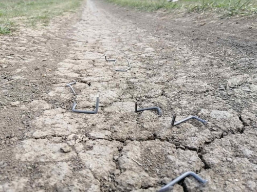 Как рассказал руководитель агрофирмы "Ольвия" Анатолий Тиховод, гвозди были разложены в нескольких местах на участке длиной порядка 4 км.