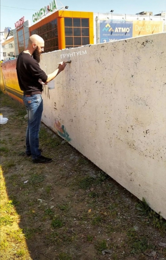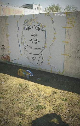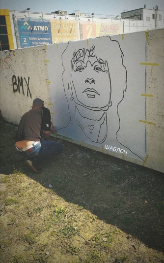 Но ребята ждали хорошую погоду и теплых деньков. И вот сегодня этот день наступил. Елена и Егор принялись рисовать на стене возле ТЦ "Палладиум" рок-звезду. Вооружившись всем необходимым мелитопольцы приступили к работе. Ребята уже прогрунтовали стену и сосем скоро на ней появятся первые штрихи портрета певца.