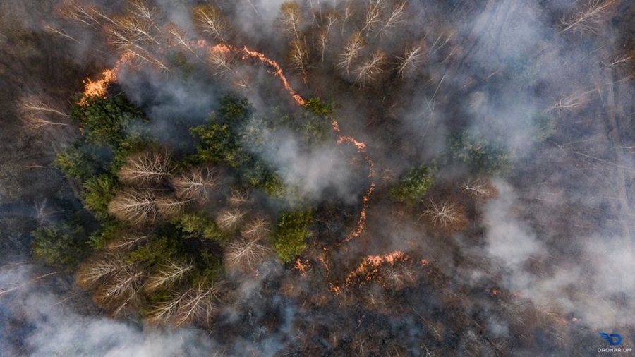 Огонь добрался до сел: опубликованы фото пожара в Чернобыльской зоне, снятые дроном