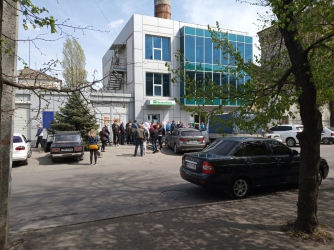 Видимо, это связано с тем, что пускают в банк всего по несколько человек. Большинство собравшихся мелитопольцев в медицинских масках, однако "социальной дистанцией" горожане пренебрегают.