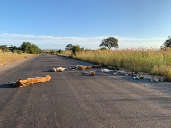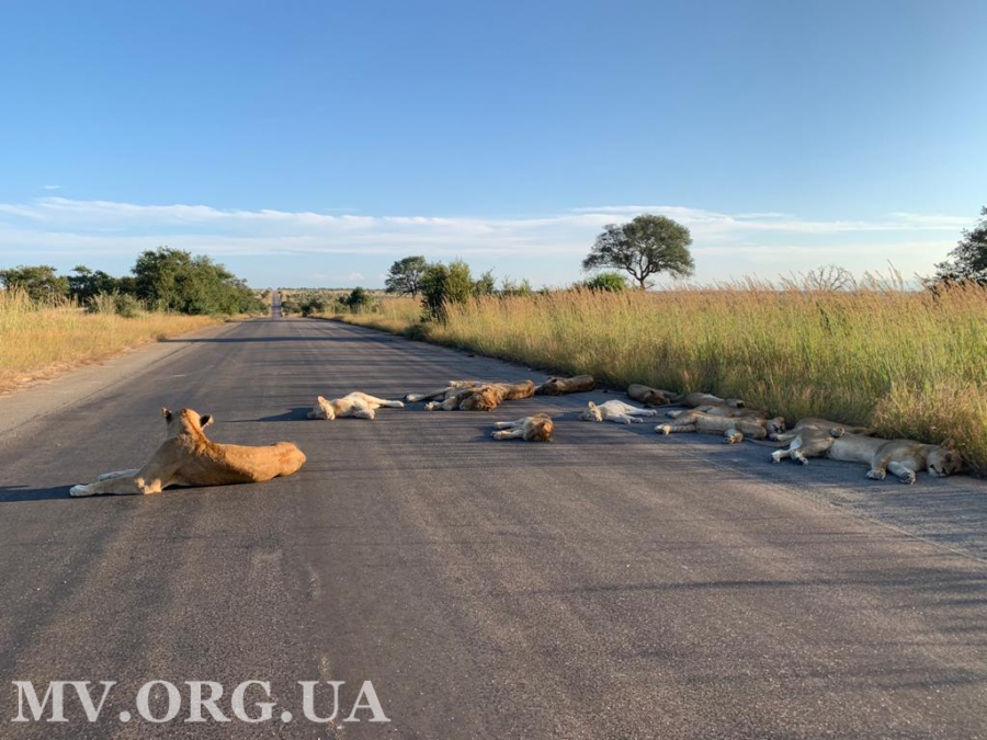 В ЮАР из-за отсутствия туристов львы спят прямо на дороге