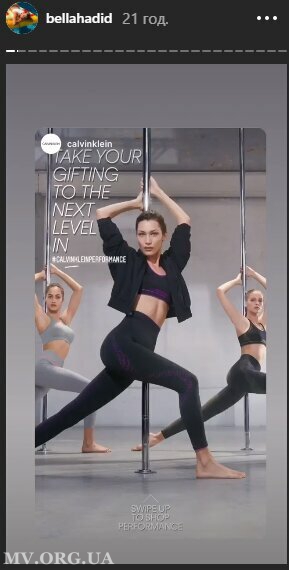 Ранее, в свои сторис она опубликовала фото с занятий фитнесом. Очаровательная модель предстала в обтягивающем костюме. Белла, расставив ноги, заняла опасную позу возле шеста, который обхватила руками выше головы.