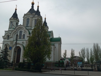 Храм расположен на проспекте Соборный (радом с Анголенко). Здесь всегда было многолюдно, не только в праздники. Сегодня можно наблюдать только несколько “попрошаек”.