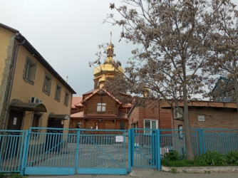 Деревянная церковь построена на территории Свято-Покровского храма на Малом рынке. И здесь сегодня никого.