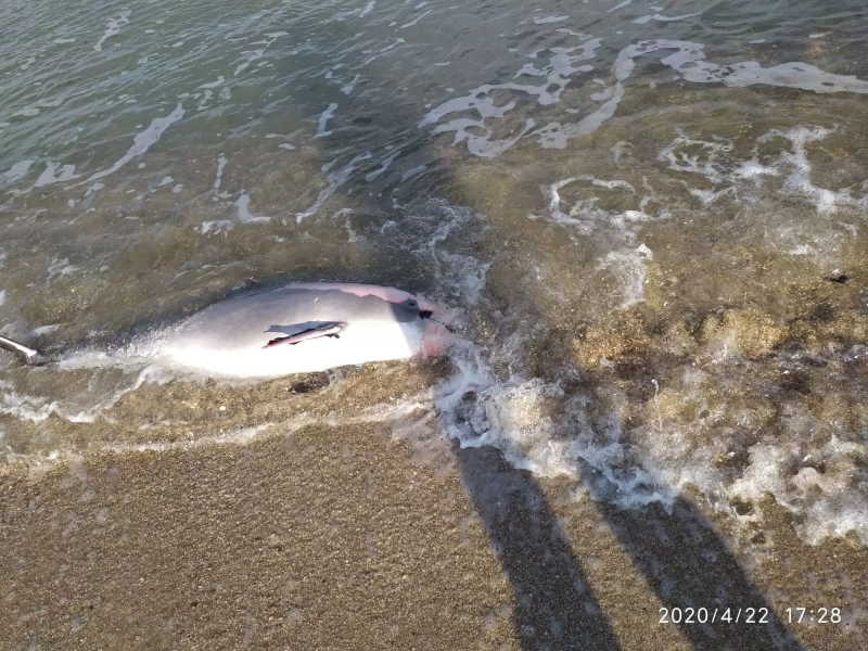 По словам мужчины, мертвого дельфина он заметил вчера, 22 апреля. На его теле были характерные повреждения, которые млекопитающее могло получить в браконьерских сетях и попросту не смог из них выбраться и задохнулся. Сам дельфин был молодой и погиб недавно, так как кожа на теле, в области головы, была ободрана и плавники также имели повреждения.