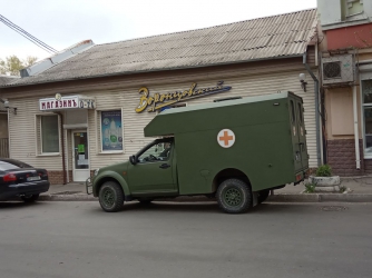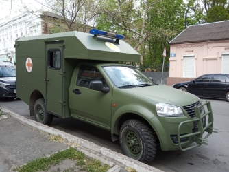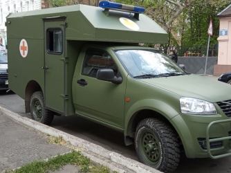 Он предназначен для вывоза раненых из медмодразделений военной службы в госпитале.