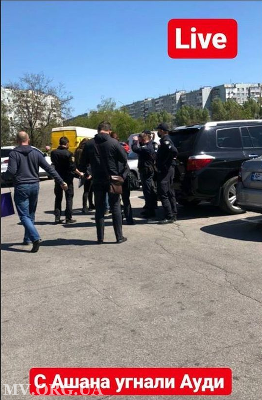 Инцидент произошел сегодня, 29-го апреля, в дневное время. Так, на стоянке около гипермаркета “Ашан” собралась целая группа стражей порядка и несколько взволнованных людей. Об этом сообщили очевидцы в паблик “Это Запорожье”.