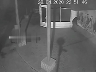 На видео видно, как двое мужчин срезают со стены заведения баннер с лошадьми, а после уносят его. Зачем им мог понадобиться большой плакат, остается только догадываться.