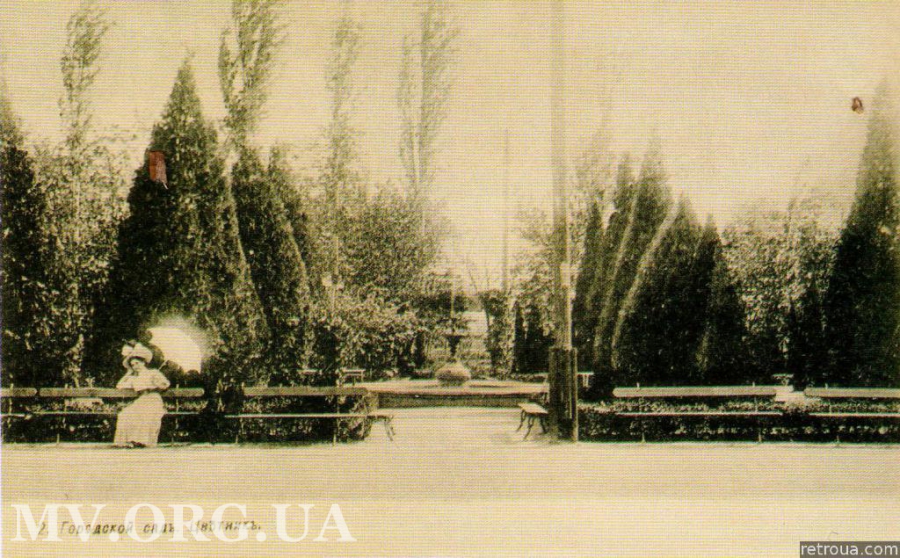 Городской сад простирался от дома Адировича до ул. Миллионной (ныне Молочная). Решение о его закладке принимал уездный комитет по благоустройству города. На плане 1866 г. городской сад показан как планируемый объект. Сад был заложен в 1882 г. под руководством городского головы И. П. Ровинского и при содействии известного лесовода П. М. Сивицкого. Через три года основные работы были закончены. Здесь высадили более 100 разных видов и форм деревьев и кустарников.
