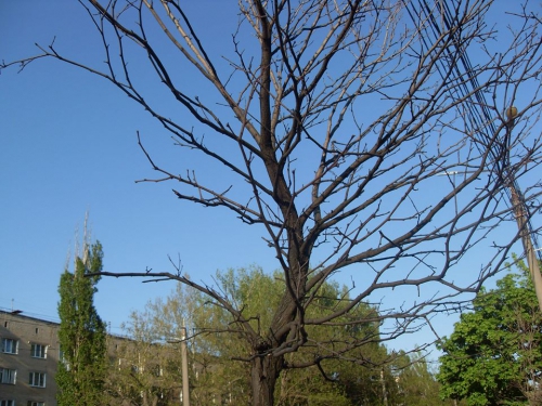 Причиной того, что молодые деревца в этом году так и не зазеленели, мелитопольчанка видит в недостаточном их поливе