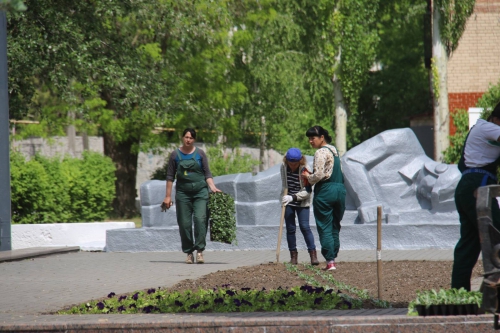 Коммунальщики в преддверии Дня Победы высадили на клумбах несколько тысяч цветов.